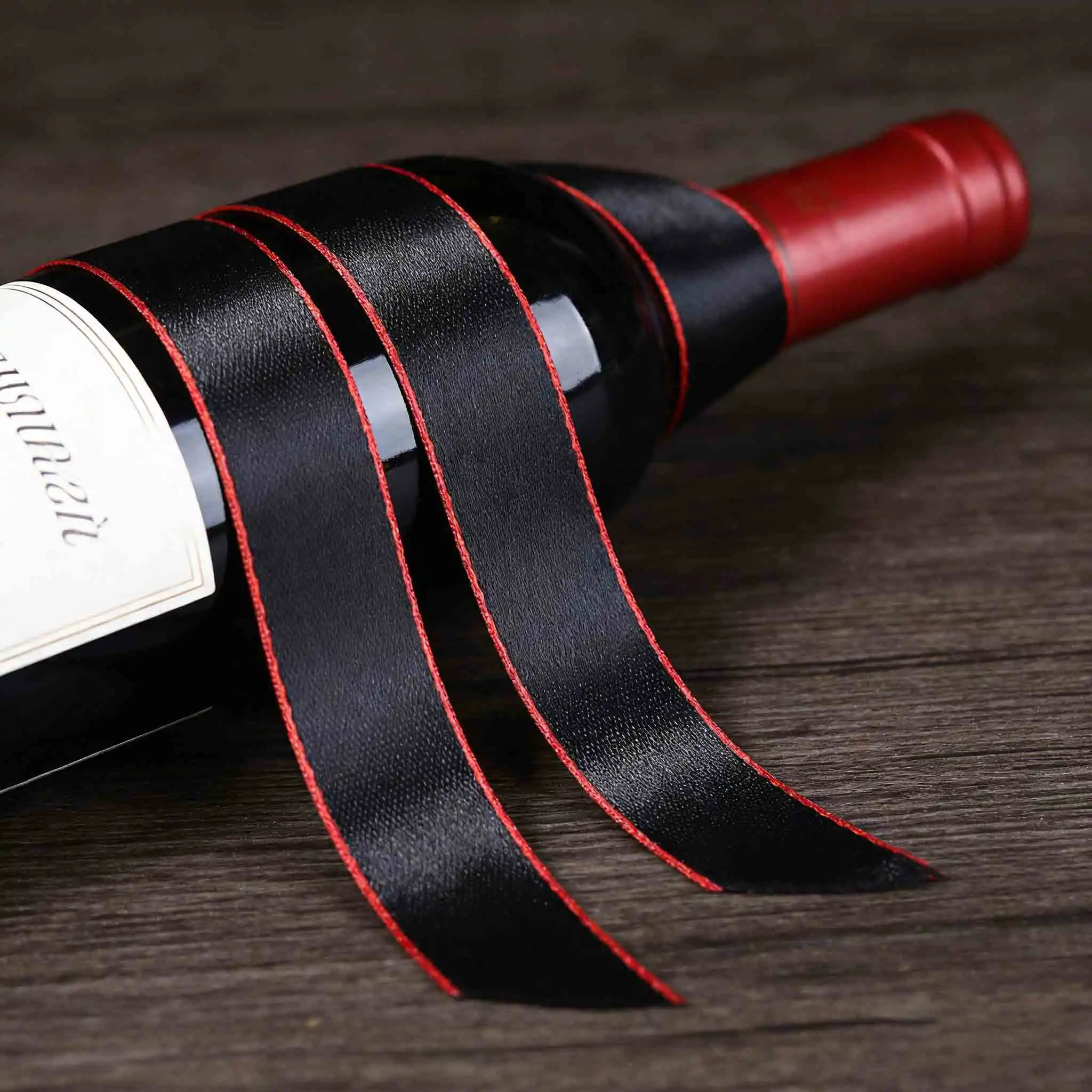 Custom Oem 2Cm Double Side Satin Ribbon Gold Edged Polyester for Wedding or Fashion for Gift & Flower Wrapping Christmas Ribbons